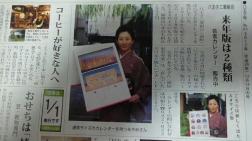 タウンニュースに取り上げていただいた芸者衆カレンダーはお陰さまで売り切れました。 お買い上げいただいた皆様ありがとうございました。